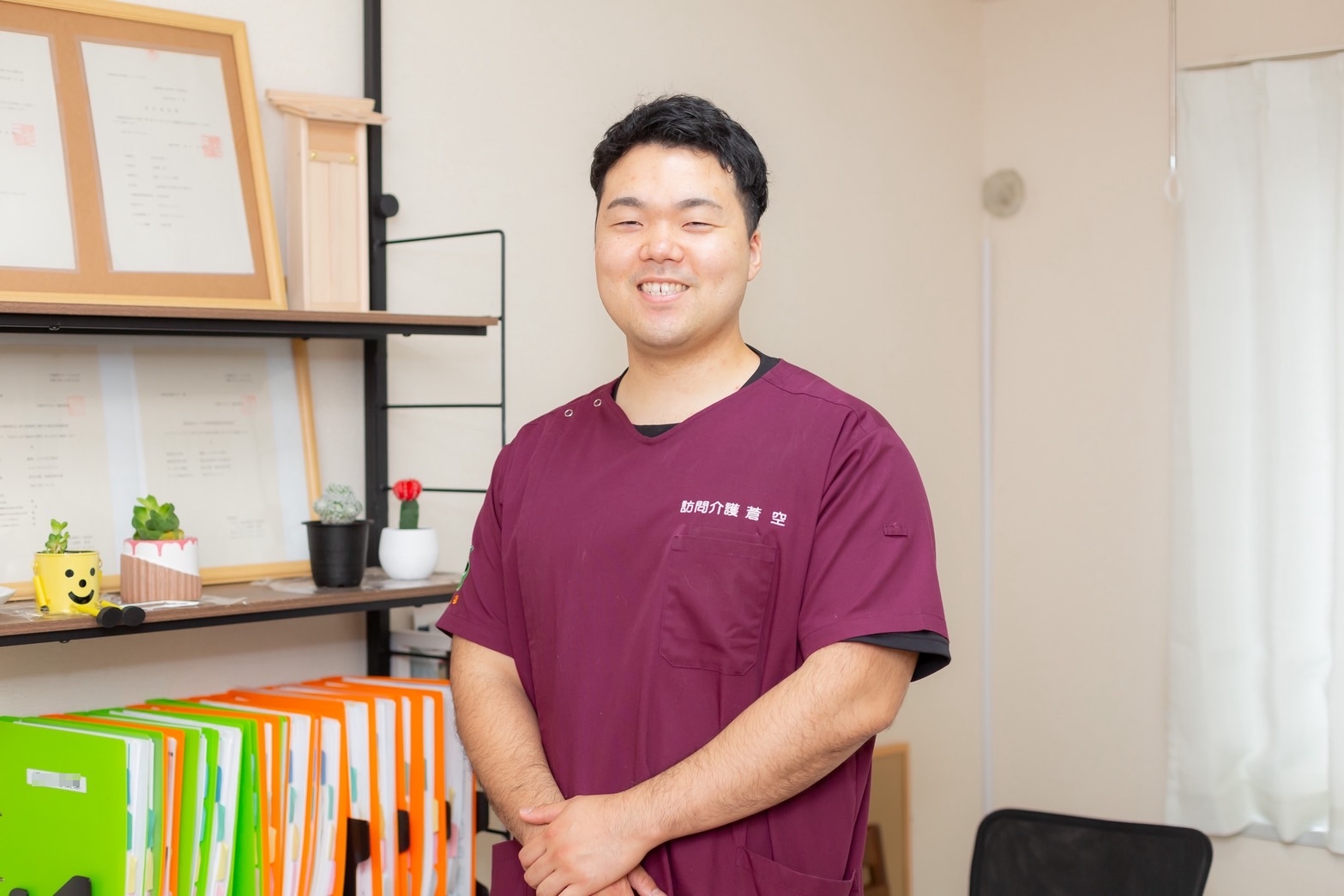 訪問介護でその方らしい暮らしを支えることにやりがいを感じ、笑顔と誠意を大切に対応しています。筋トレが趣味で体力に自信があり、移乗などの介助も安心して任せていただいています。ご利用者様やご家族からの信頼を励みに、日々努めています。